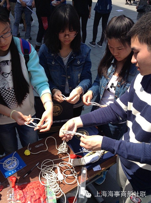 活动中水手工艺社的社员们展示了水手结打法,手把手教学,并向活动参与者介绍了水手结的用途,加深了参与者们对水手结的认识,成功打出水手结的还获得了自己亲手编织的绳结。